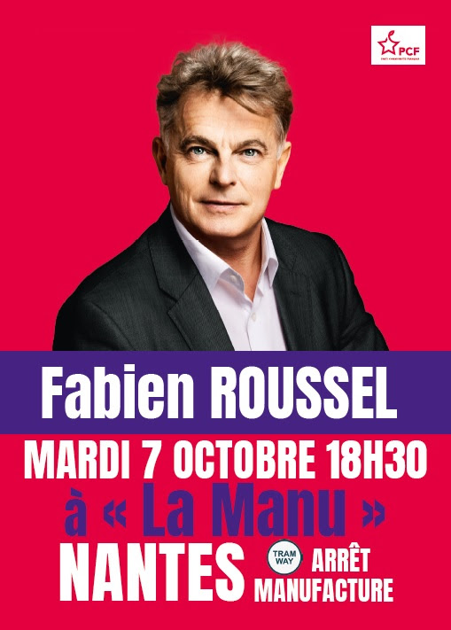Nous aurons le plaisir d’accueillir Fabien Roussel, secrétaire national du PCFle mardi 7 octobre. Après la visite des Chantiers navals de Saint-Nazaire, il sera présent à Nantes pour un grand moment d’échanges :