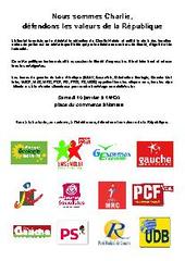 Les forces de gauche de Loire-Atlantique (EELV, Ensemble, Génération Ecologie, Gauche Uni-taire, MJCF, MJS, MRC, PCF, PG, PRG, PS, UDB) appellent tous les citoyen-ne-s, tous les répu-blicain-e-s à la marche silencieuse pour rendre hommage aux victimes le :